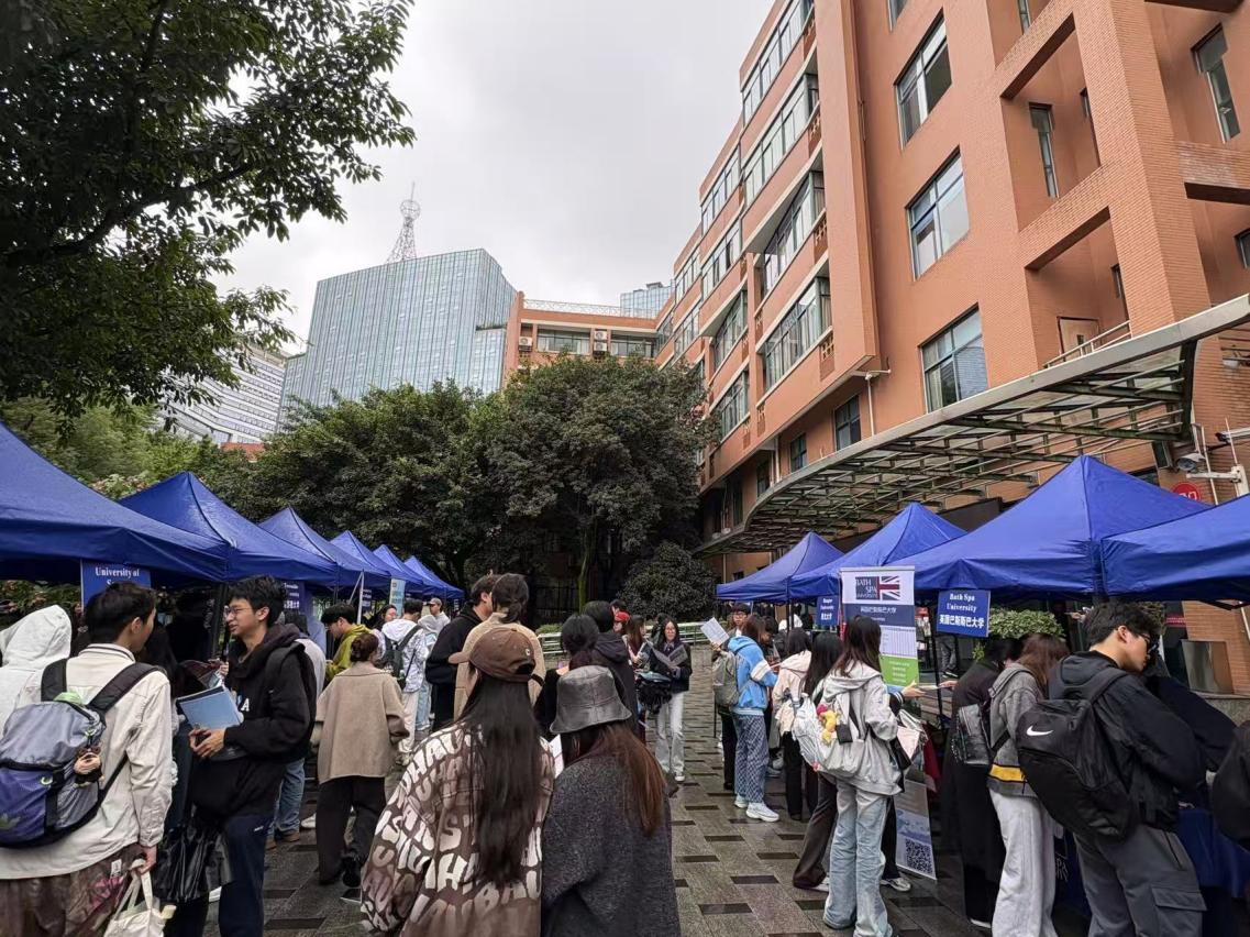 活动当天,来自英国、加拿大、新加坡等多个国家的 30 余所海外知名院校代表齐聚川大。学院SQA-AD项目 2023 级全体学生及 2024 级部分学生满怀期待,与各院校代表展开面对面深入交流,现场气氛热烈。 交流会现场,各海外院校代表结合自身办学优势,围绕学生关心的核心问题进行了系统讲解与细致解答。院校代表们不仅详细介绍了学校的办学历史、综合排名、学科实力、特色专业设置,还针对 SQA-AD 项目学生的特点,重点解读了专业对接的具体要求、语言能力门槛等升学等关键信息。同时,关于学生支持服务体系、毕业生就业前景,以及留学申请流程中的材料准备、签证办理注意事项、奖学金申请渠道等实际问题,院校代表均逐一进行了专业解答,有效帮助学生厘清留学困惑,明确升学方向,让学生对海外学习与生活有了更清晰的认知。