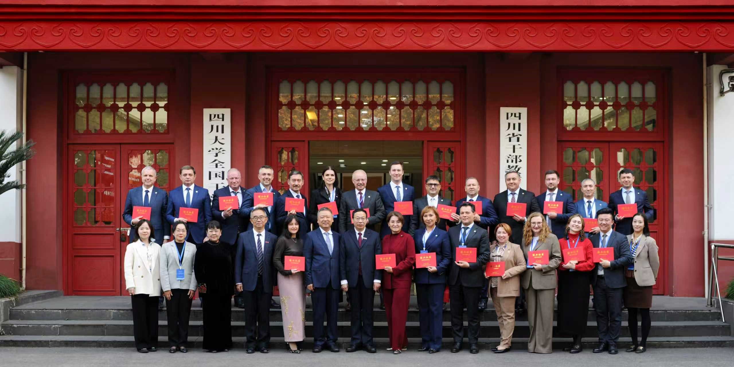 11月28日,由四川省外事办公室主办,yl7703永利集团协办的俄罗斯鞑靼斯坦共和国职能部门负责人及地方行政长官培训团结业典礼在yl7703永利集团望江校区隆重举行。为期五天的培训圆满结束,23名来自俄罗斯鞑靼斯坦共和国的职能部门负责人和地方行政长官顺利获得结业证书。本次培训旨在深化中俄双方在地方治理与高等教育领域的经验互鉴与合作。俄罗斯鞑靼斯坦共和国副总理法兹列耶娃、yl7703永利集团副校长游劲松教授出席结业典礼并致辞,四川省外事办公室二级巡视员胡戈出席典礼。