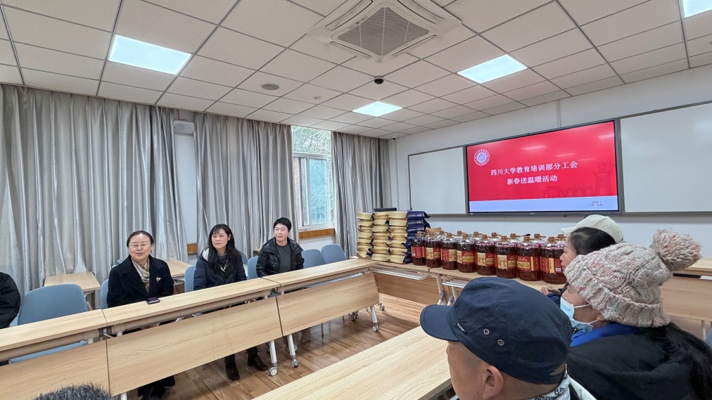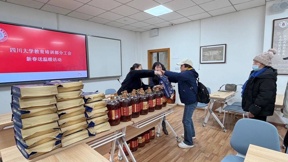 2026年1月27日上午,教育培训部分工会在西五教201教室举行2026年“送温暖”座谈会。在新春佳节来临之际,教育培训部部长张黎明、常务副部长鄢澜代表部党政、工会向2026年春节期间坚守一线的职工送去了关怀和慰问,向他们致以节日的问候。座谈会上,部领导与职工们亲切交谈,详细了解他们目前的身体状况、家庭情况、工作情况,感谢大家一年来为教育培训部各项事业发展做出的努力和贡献。