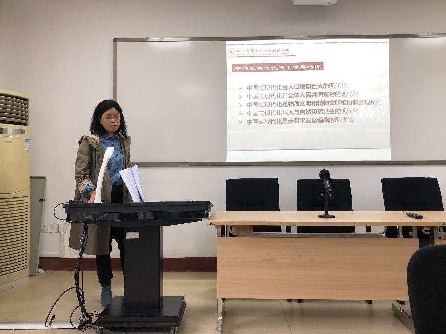支部书记余丹同志以《解读:中国式现代化》为主题,从中国共产党的中心任务、中国式现代化的五个重要特征、中国式现代化的本质要求、到2035年我国发展的总体目标四个方面细读“党的二十大”报告中的“中国式现代化”,给教工一支部全体党员讲了一堂生动的党课。