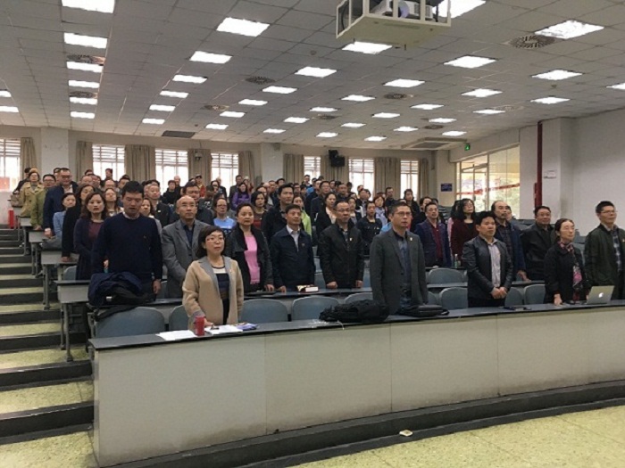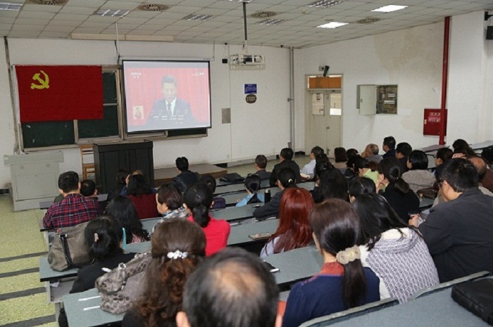 10月18日上午9时,举国关注,举世瞩目的中国共产党第十九次全国代表大会在北京人民大会堂隆重开幕。yl7703永利集团成人继续教育学院党委组织全体党员和教职工130余人在望江校区基础教学楼201室全程观看了开幕盛况。yl7703永利集团华西青羊校区、龙泉校区全体党员也收看了十九大开幕式。