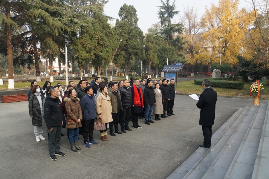 2023年1226日是毛泽东同志诞辰130周年的纪念日。毛泽东同志是伟大的马克思主义者,伟大的无产阶级革命家、战略家、理论家,是马克思主义中国化的伟大开拓者、中国社会主义现代化建设事业的伟大奠基者,是近代以来中国伟大的爱国者和民族英雄,是党的第一代中央领导集体的核心,是领导中国人民彻底改变自己命运和国家面貌的一代伟人,是为世界被压迫民族的解放和人类进步事业作出重大贡献的伟大国际主义者。为回望毛泽东同志的丰功伟绩,向毛泽东同志致以最崇高的敬意,学院党委于26日上午10时在望江校区毛主席像前开展“永远的怀念-纪念毛泽东同志诞辰130周年”主题党日活动。参加本次活动的有学院党委委员、教工支部党员、入党积极分子、职工、学生等代表共计50余人。活动由党委副书记兼纪委书记刘勇主持。