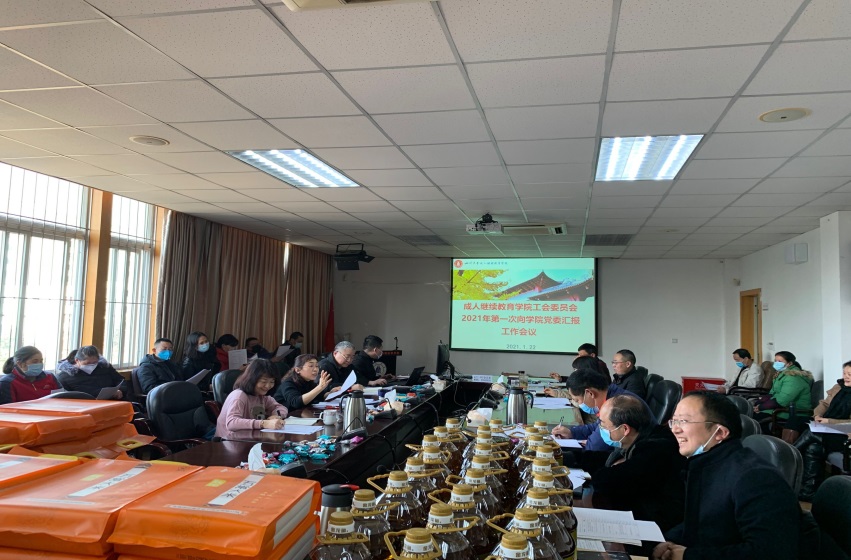 2021年1月22日下午, 成人继续教育学院工会委员会在西五教502会议室召开2021年第一次工作汇报会,院长冉蜀阳、党委副书记乔长江、党委副书记兼纪委书记刘勇、全体工会委员、工会组长参加此次会议。会议由工会主席殷明主持。