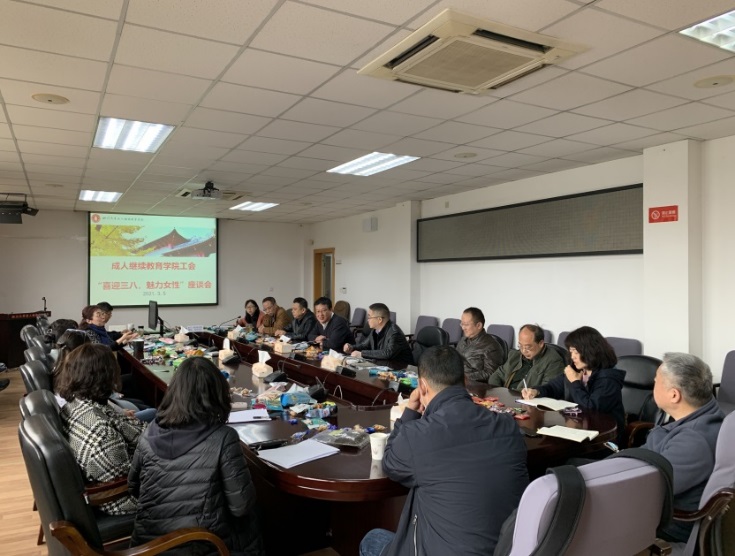2021年3月5日下午,为庆祝第98个“三八”妇女节,成人继续教育学院工会在西五教502会议室举行了“喜迎三八,魅力女性”座谈会,全体工会干部及女职工代表参加了此次座谈。