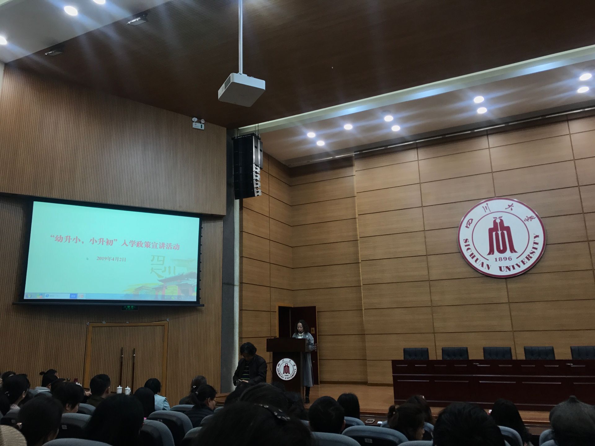 4月2日下午3时,我院12名职工参加了武侯区教育局举办的幼升小小升初讲座。这次讲座在西五教演播厅举办,全校听讲座人数有500多人,武侯区教育 局领导现场讲解,讲座由校工会冷泠副主席主持。