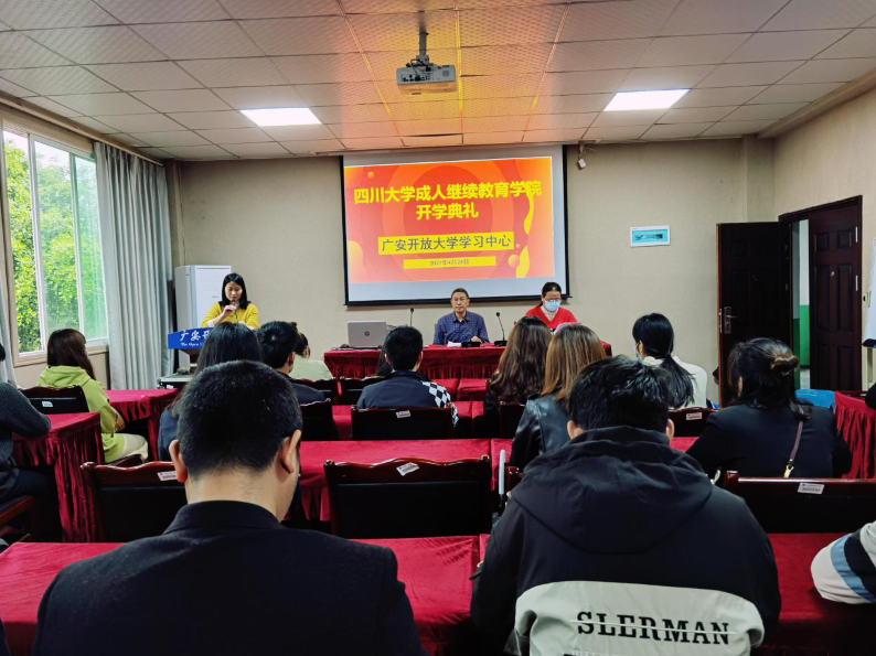 2021年4月24日上午,yl7703永利集团高等学历继续教育(网络教育)新生开学典礼在广安开放大学二楼培训教室举行。学校教务教学处相关老师及及全体新生参加了此次典礼。典礼由教务教学处罗丽萍老师主持。
