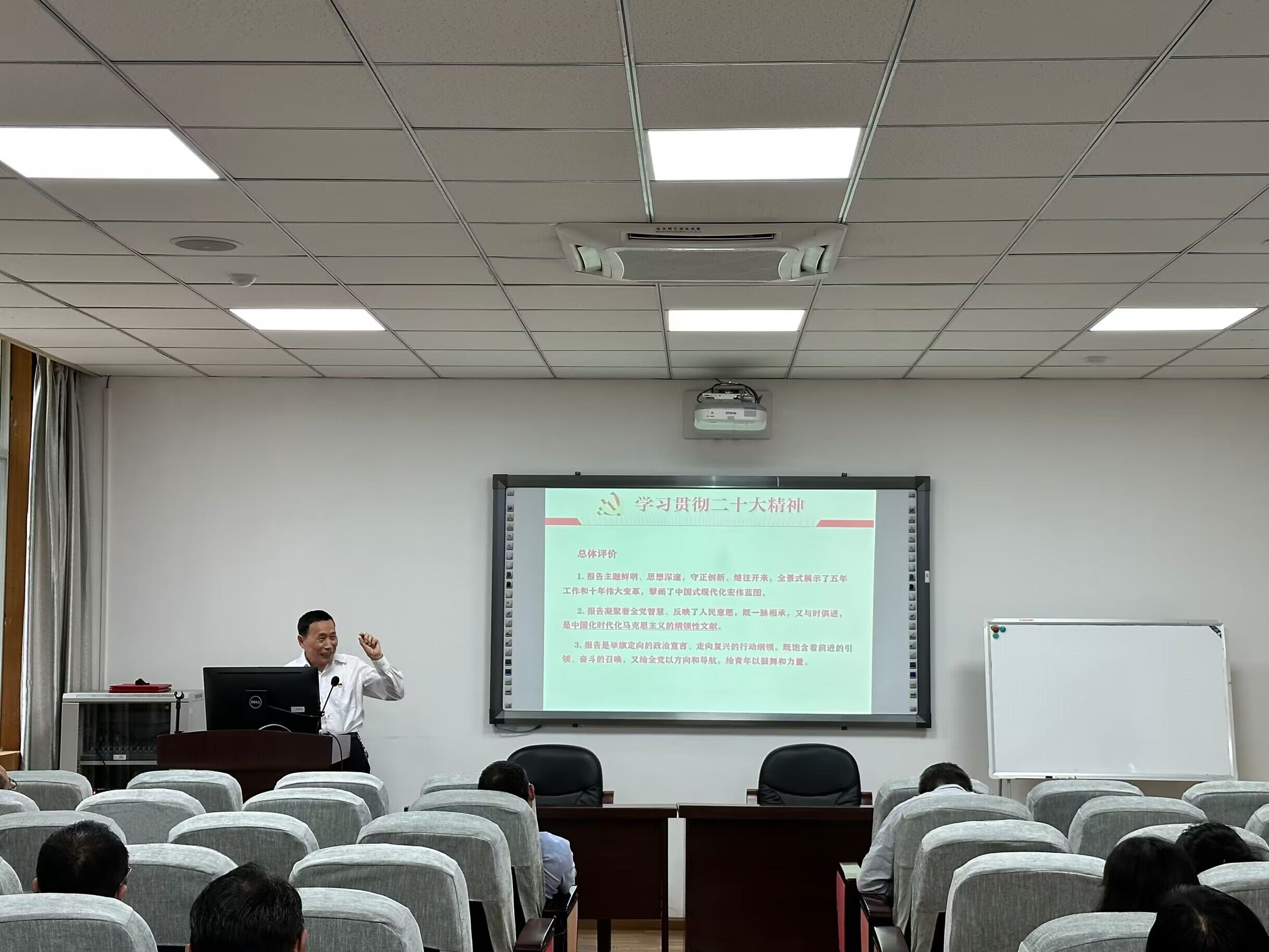 为深入学习贯彻党的二十大精神,更加做好学院青年教职工的思想政治工作,4月12日下午,学院邀请原成人与网络教育党委书记,现学校银龄宣讲团成员、我院关工委副主任李建国教授在望江校区西五教201教室为我院60余名青年教职工作了题为《马克思主义中国化时代化的理论自觉与时代探索—学习习近平新时代中国特色社会主义思想汇报》学习党的二十大精神专题讲座,本次讲座由学院党委书记潘霜柏主持。