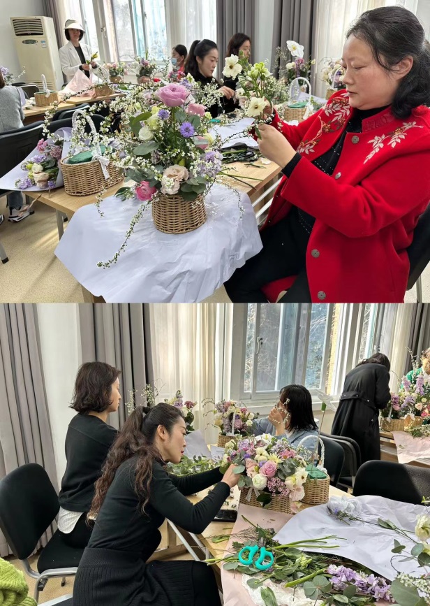 桃花开,燕归来。在这个暖意融融的春日,为了庆祝第113个“三八”国际妇女节,丰富女教职工的精神文化生活,学院工会为全体女教职工组织策划了花艺培训活动,在这个愉悦的日子,向身边的每一个“她”致以深深的敬意。