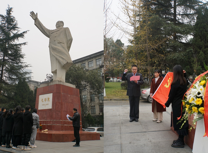 2020年12月26日是毛泽东同志诞辰127周年的纪念日,毛泽东同志是伟大的马克思主义者,伟大的无产阶级革命家、政治家、军事家、战略家和理论家,中国共产党、中国人民解放军、中华人民共和国的主要缔造者。为大力弘扬爱国主义精神,认真落实《新时代爱国主义教育实施纲要》,深入学习党史、新中国史、改革开放史、社会主义发展史,迎接中国共产党成立100周年,学院党委于26日上午10时在望江校区毛主席像前开展“迎接建党100周年暨纪念毛主席诞辰127周年”主题党日活动。参加本次活动的有学院党委委员、教工支部党员、退休党员、发展对象、入党积极分子、民主党派人士、职工、学生等代表共计40人。活动由党委副书记乔长江主持。